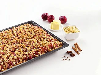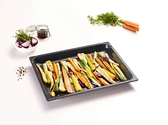 Универсальный противень Miele HUBB 51 с антипригарным покрытием PerfectClean идеально подходит для выпечки высоких слоеных пирогов, лазаньи, а также для сбора жира и мясного сока во время жарки и гриля. Он устанавливается на направляющие FlexiClip или в боковые держатели, подходит для духовых шкафов Miele H 2000 с объемом 56 л.
