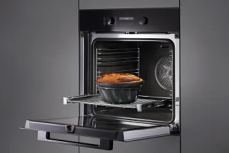 Универсальная функциональность выражается в девяти режимах работы: конвекция Plus для равномерного выпекания, верхний/нижний жар для классических рецептов, интенсивное выпекание для плотных коржей, гриль и гриль с обдувом для румяной корочки, AirFry для хрустящих блюд с минимальным количеством масла, а также быстрый подогрев для незамедлительного старта.