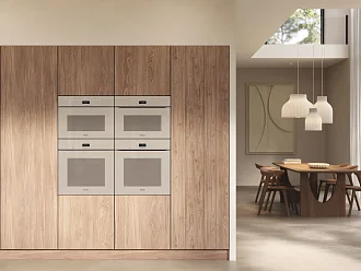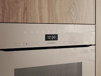 Встраиваемый духовой шкаф Miele H 7464 BPX Pearl beige — утончённый прибор в жемчужно-бежевом исполнении, который объединяет эстетическую утонченность ArtLine и функциональную эргономику без ручек: фасад с гладкой дверцей CleanGlass создаёт минималистичный образ.