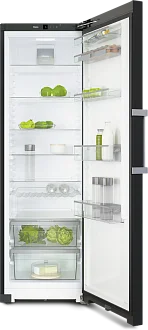 Интерьер холодильника Miele KS 4783 DD продуман до мелочей. Удобные стеклянные полки, легко выдвигающиеся и снимаемые для мытья, делают использование устройства комфортным. Специальный ящик для овощей и фруктов с регулируемой влажностью создает оптимальные условия для хранения, а отдельные compartments для мяса и рыбы поддерживают необходимую температуру и влажность.