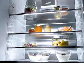 Система VarioRoom позволяет изменять объем морозильного отделения в зависимости от потребностей пользователя. Панель управления FreshTouch обеспечивает удобное управление всеми функциями холодильника. На дисплее отображается температура в холодильной и морозильной камерах, а также доступны различные режимы работы: "Шаббат", "Вечеринка", "Отпуск". Холодильник оснащен функцией SuperCool для быстрого охлаждения продуктов, а также акустическим и оптическим сигналами, предупреждающими об открытой дверце или изменении температуры.