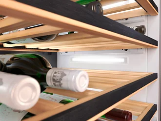 Встраиваемый винный холодильник Miele KWT 2672 VIS – это элегантное и функциональное решение для хранения вина. Этот прибор обладает стильным дизайном, корпус выполнен в цвете "черный обсидиан", а тонированная стеклянная дверь оснащена УФ-фильтром, защищающим вино от вредного воздействия ультрафиолета. Этот прибор обладает вместительностью в 370 литров, что позволяет хранить до 91 бутылки бордо 0,75 л. Особенностью модели является наличие трех температурных зон и функцию "Шаббат", что позволяет хранить разные виды вина при оптимальной температуре для каждого из них.