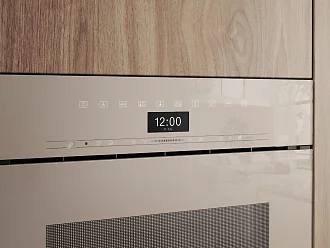 Комби-пароварка Miele DGC 7460 HCX Pearl Beige Роскошный жемчужно-бежевый корпус этой техники задаёт тон премиальной кухни: тёплый, изысканный оттенок в сочетании с гладкой передней панелью без ручек обеспечивает минималистичный и современный вид. Моторная лифтовая панель с технологией SoftClose аккуратно открывается и закрывается, а система Touch2Open делает доступ простым и элегантным — достаточно лёгкого касания. Высококачественные материалы и внимание к деталям видны в каждой линии: фронтальная поверхность плавно интегрируется в кухонный гарнитур ArtLine, создавая впечатление цельности и законченного дизайна. Внутреннее пространство камеры выполнено из нержавеющей стали с рельефной поверхностью, которая не только долговечна, но и облегчает очистку; края и детали обработаны так, чтобы исключить сколы и появление пятен. Функциональность органично сочетается с эстетикой: DirectSensor дисплей аккуратно встроен в панель управления, предлагая интуитивные настройки и мультиязычный интерфейс MultiLingua, а индикаторы текущего времени и даты придают устройству статус современного бытового прибора. BrilliantLight освещение создаёт ровный и яркий обзор рабочего объёма на 67 литров, позволяя видеть результат приготовления на четырёх уровнях одновременно. Съёмные боковые направляющие упрощают монтаж противней и контейнеров, а легко снимаемые решётки и гидрофункция HydroClean обеспечивают удобство ухода без лишних усилий. Дверца со стеклом CleanGlass и защита от ожогов добавляют безопасности, а автоматическое уменьшение пара перед завершением программы предотвращает конденсацию и сохраняет текстуру блюд. Технические решения направлены на максимальную гибкость в готовке: внутренний внешний парогенератор и технология DualSteam обеспечивают равномерное распределение пара, а точная регулировка температуры от 30 до 230 °C (пар 40–100 °C) даёт возможность готовить от деликатных су-вид до интенсивного запекания и хрустящего гриля. Набор автоматических программ Mix & Match и индивидуальные настройки влажности позволяют составлять полноценные меню без смешивания вкусов и запахов, сохраняя ароматы отдельных блюд. Функция Crisp и режимы конвекции плюс, гриль с обдувом и верхний/нижний жар расширяют кулинарные приемы, а специальные программы для выпечки, размораживания и подогрева посуды облегчают повседневное использование. Наличие режима Sous-vide, интенсивного выпекания и конвекции Eco подчёркивает универсальность: прибор экономит энергию, оставаясь эффективным при любых задачах. Простота эксплуатации дополнена продуманной эргономикой: контейнер свежей воды объёмом 1,4 л скрыт за моторизованной панелью, есть контейнер для конденсата и сливной фильтр — всё это делает обслуживание быстрым и аккуратным. Программируемый запуск и завершение, таймер обратного отсчёта и индикация фактической и целевой температуры дают полный контроль над процессом, а звуковой сигнал и рекомендуемые температуры помогают избежать ошибок. Безопасность обеспечена системой защитного отключения, блокировкой запуска и системой охлаждения испарений. В комплекте поставляются универсальный противень и решётка с покрытием PerfectClean, перфорированные и неперфорированные контейнеры для пара, моющее средство HydroClean и таблетки для удаления накипи — готовый набор для длительной работы. Прибор произведён в Германии