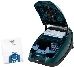 Пылесос Miele SGSF5 Complete C3 Flex PowerLine Parquet Petrol Элегантный чёрный корпус этого напольного пылесоса сочетает в себе продуманную форму и высокое качество выполнения: аккуратные линии, матовая поверхность и опоясывающий бампер защищают мебель и придают прибору солидный, современный вид.