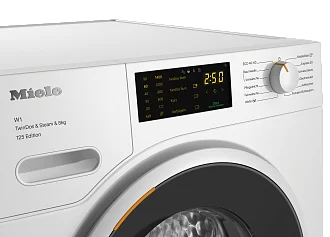 Стиральная машина Miele WWB680 WCS 125 Edition представляет собой идеальное сочетание современного дизайна и передовых технологий, что делает её незаменимым помощником в вашем доме. Внешний вид этой модели отличается элегантностью и минимализмом, что позволяет ей вписаться в любой интерьер. Белый корпус и лаконичные линии подчеркивают её утончённость, а интуитивно понятная панель управления обеспечивает лёгкость в использовании. Дверца с хромированной отделкой добавляет изысканности и завершает образ, делая её настоящим украшением вашего дома.