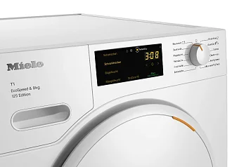 Сушильная машина Miele TWC 660 WP 125 Edition разработана для тех, кто ценит сдержанную элегантность и продуманную эргономику в одном корпусе: модель серии WhiteEdition выполнена в оттенке «белый лотос», который плавно продолжает оформление дверцы, а аккуратные линии и наклон панели управления на 5° делают эксплуатацию комфортной и приятной.