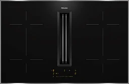 Miele KMDA 7676 FL U Эта накладная безрамочная варочная панель с интегрированной вытяжкой привносит в кухню утончённый минимализм: чёрная стеклокерамическая поверхность смотрится благородно и легко очищается, а чёрная защитная решётка добавляет аккуратности и безопасного контакта с посудой.