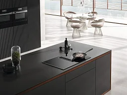 Варочная панель Miele KM 6523 FL Элегантное сочетание чёрной стеклокерамики и аккуратной рамки из нержавеющей стали превращает рабочую поверхность кухни в центр внимания, где минимализм встречается с инженерной точностью.