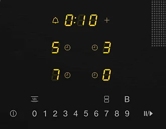 Сенсорное управление устройства представлено в виде слайдера для каждой конфорки, что позволяет легко и быстро настраивать мощность и активировать дополнительные функции. Пользователь может выбрать одну из девяти мощностей конфорки, а все настройки отображаются на цифровом дисплее. Функция автоматического отключения сработает, если конфорка перегреется, что обеспечивает безопасность во время готовки. Инновационная возможность восстановления настроек позволяет легко вернуть прежние параметры всего лишь одним нажатием в течение пяти секунд после случайного отключения.